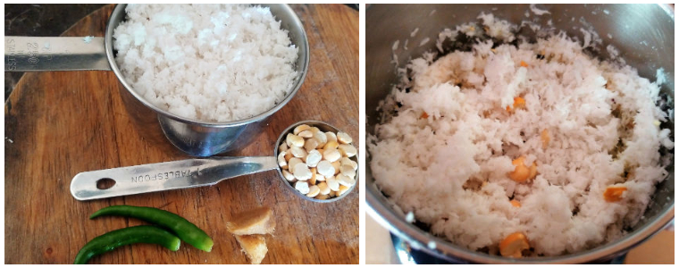 When I need coconut I slice them up, remove the brown skin, cut them into smaller pieces, and use them. But if you have grated coconuts ready, then this chutney can be made in a jiffy.