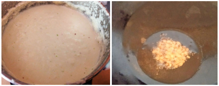 - Transfer to a container. Take oil in a pan and add the tempering items one by one. Add the curry leaves after switching off the stove.
