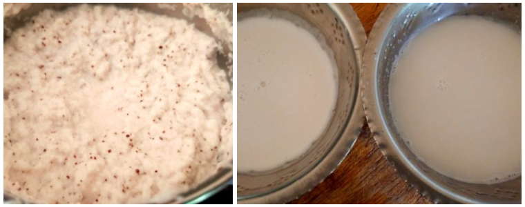- Extract milk from the coconut. To extract the first milk add ½ cup of warm water and grind the coconut. Extract the milk using a strainer. Keep aside.