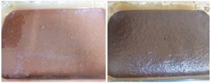 Bake at 180°C for 30-40 minutes till a toothpick inserted comes out clean. Mine took 35 minutes. Once baked, cool the cake in the pan itself and frost with chocolate frosting.