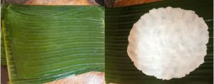 Rice dough filled with a sweet coconut filling and steamed in banana laves