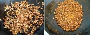 Cool this too and grind it along with the spices, jaggery, and salt to a coarse paste without adding water.