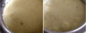 Once it comes to a boil, reduce the flame and add the beaten curd. Add more salt as needed.