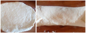 Roll it out to a rectangle and shape it into a log. Pinch the seams and transfer to a greased bread pan.