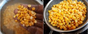 Take the water, 1tsp ghee, salt, and turmeric powder as given under "for the dough" in a vessel and mix well.