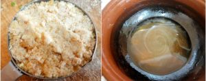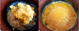 Cool down and strain the dal. Mash it to a smooth paste either with the stone pestle as I do or with a masher.