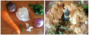 Next, take all the ingredients except the rice flour in a food processor and grind it for a few minutes till it becomes a coarse mass.